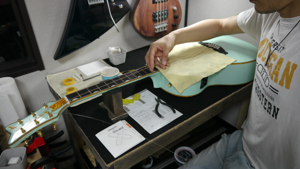 今回はお客様とのご要望等をお聞きし、こちらの弦を張ってセットアップ(調整)を行っていきます。