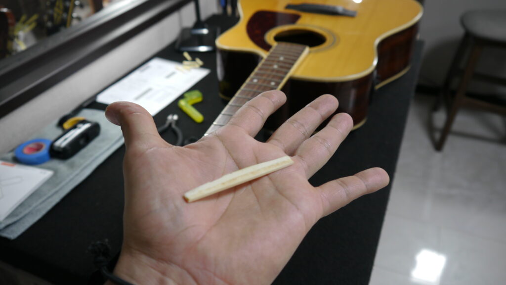 弦高が高めだったため、サドルの方を調整していきます。