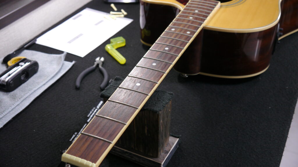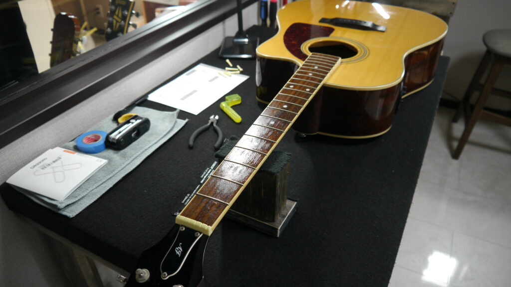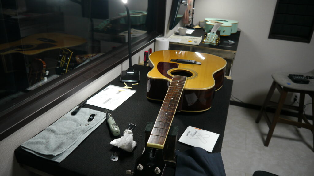 当工房のアコースティックギター向けの「トータルセットアップ」では、7~8つの作業をメインに実施し、お預かりしたギターの状態やプレイヤー様のご要望に合わせて調整させていただいてます。(当工房のアコースティックギター向けの「海外スタイル・トータルセットアップ」については👇をご確認ください♪)