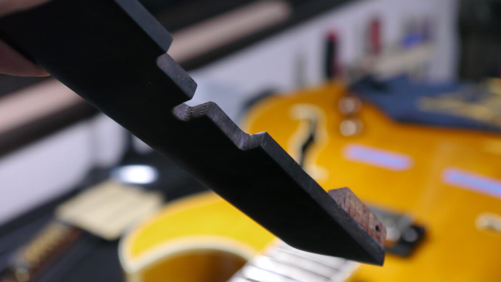 いかがでしょうか?当工房ではこのようなセットアップ(調整)を、お客様の演奏スタイルに合わせた完全オーダーメイドセットアップを心がけております。