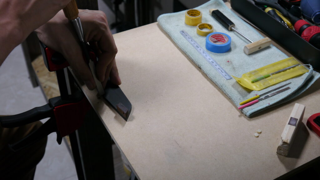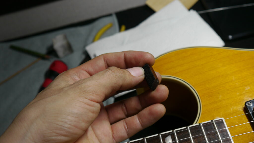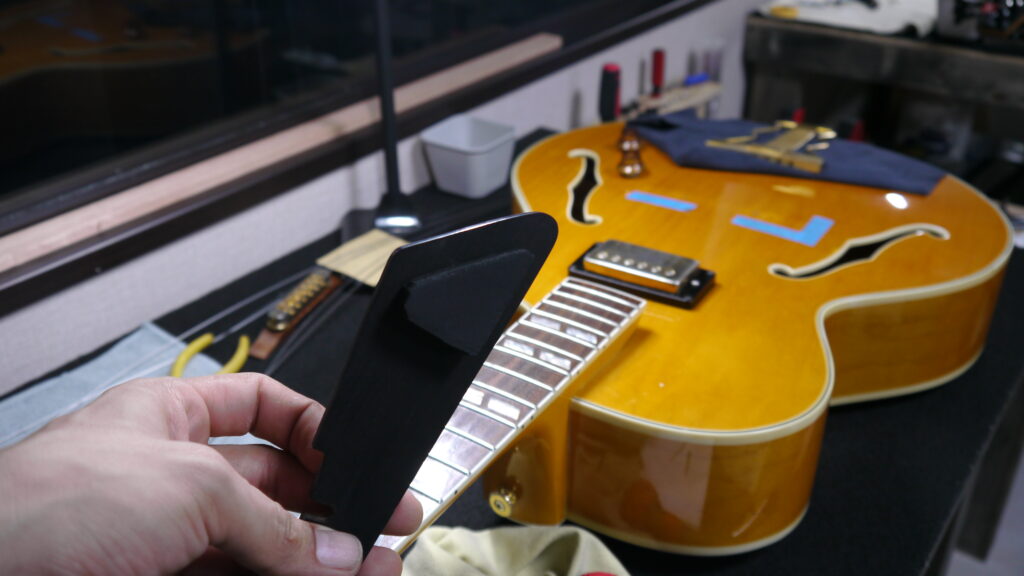 何度もギターに合わせて、パーフェクトにはまるよう加工していきます。