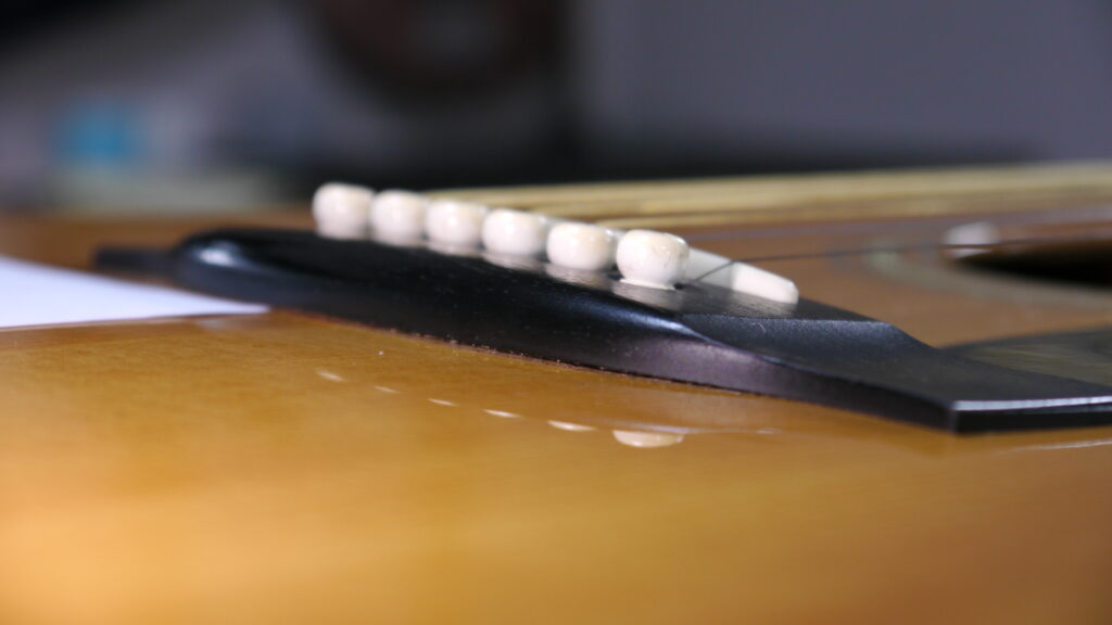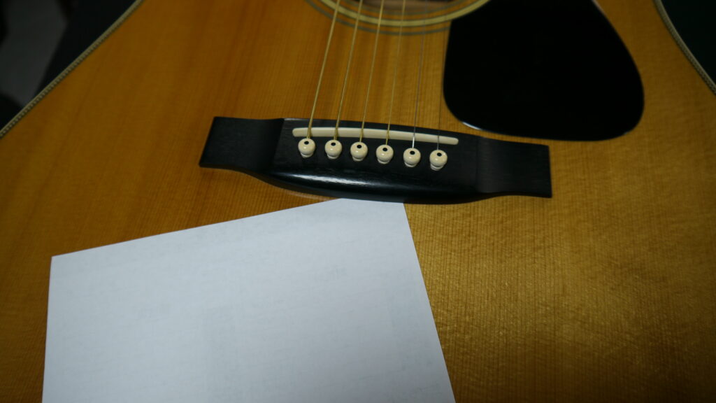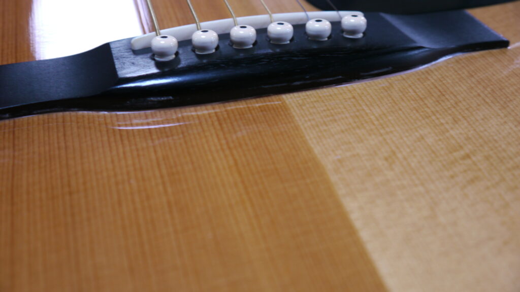 この状態を放置すると、弦の張力に引っ張られて剥離が進行し、最終的にはブリッジが完全にはがれてしまいます。