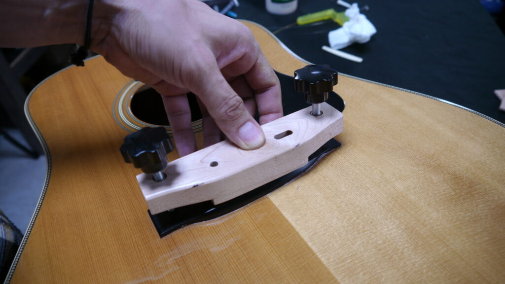 接着剤や状態、そして何より一本一本のギターの反応によって乾燥期間は異なります。