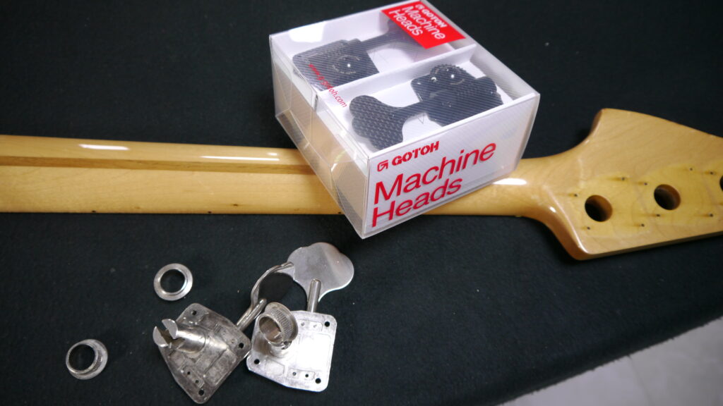 FERNANDES PBベースのオーナー様より、先日実施したトータルセットアップに続き、「軽量なゴトーCBT-01-L4ペグに交換してみたい!」とのご依頼をいただきました。