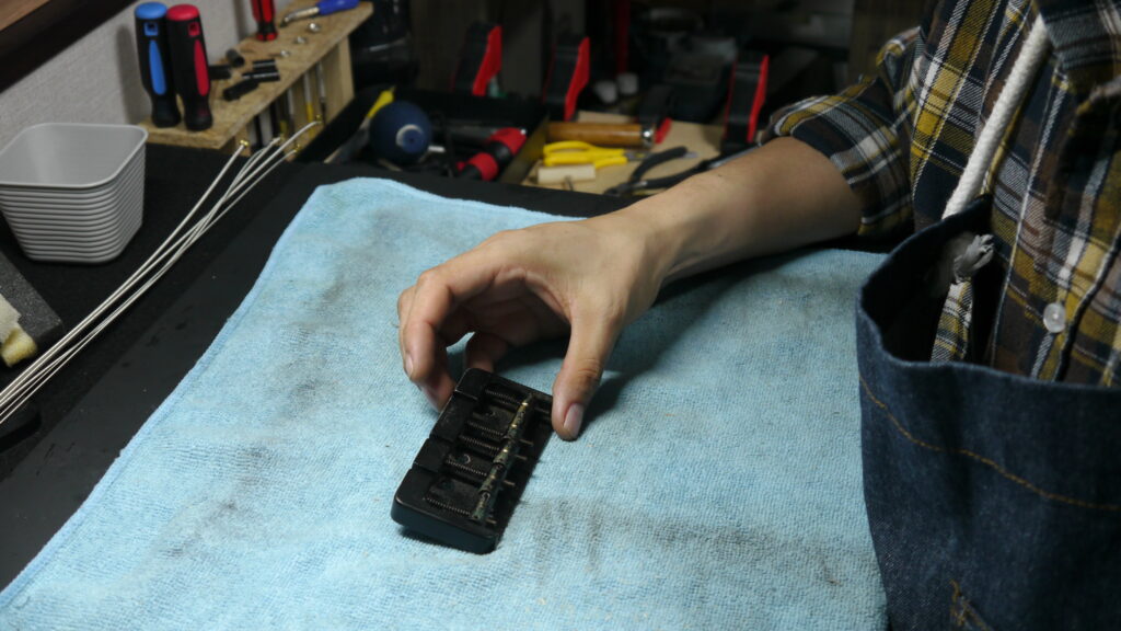 ジャックの接触不良解消から、フレットのすり合わせ、ポット交換、ブリッジ・ネック角度の最適化まで、一点一点の丁寧で精密な調整を実施。「え!弦高低い!ここまで変わるんですね!?とても弾きやすくなった!」 と大変お喜びいただきました🎸