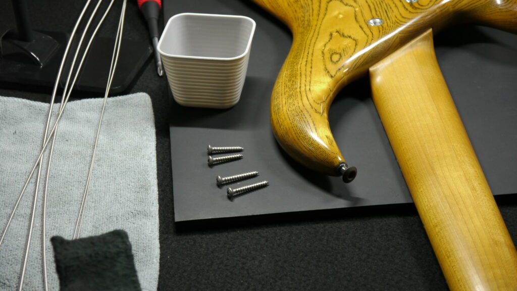 ネックを外し、普段は見ることのできない部分も含め、ベースの状態を細かく拝見していきます🔍
