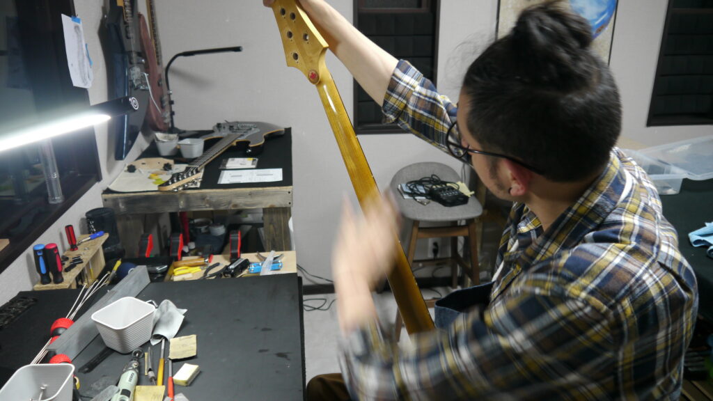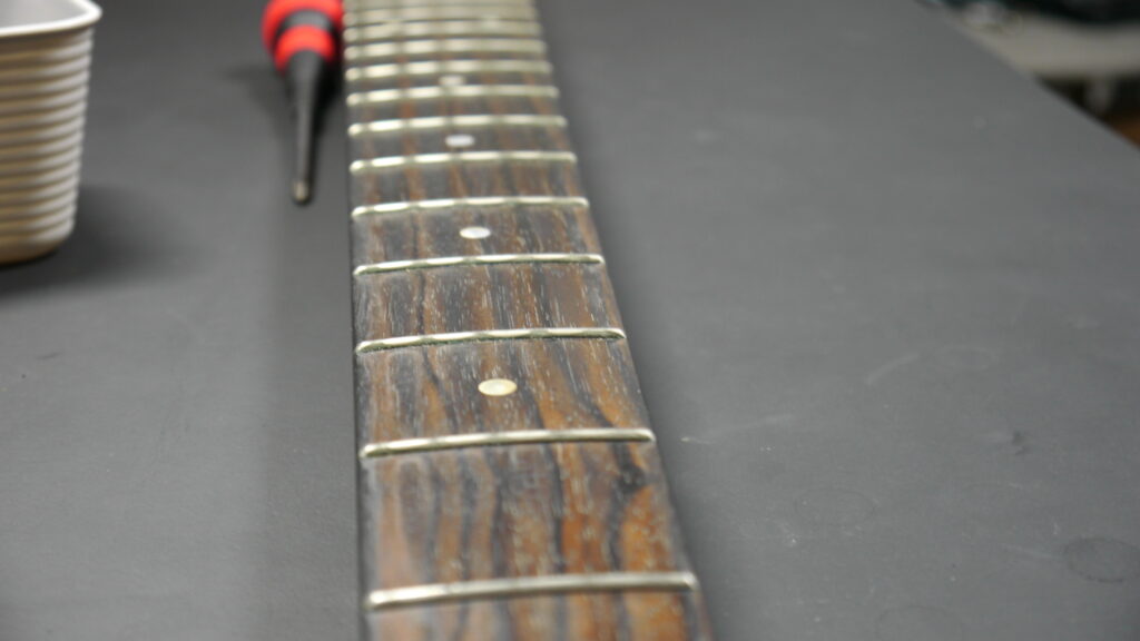今回はフレットの摩耗も見受けられましたため、フレットのすり合わせも実施してまいります。