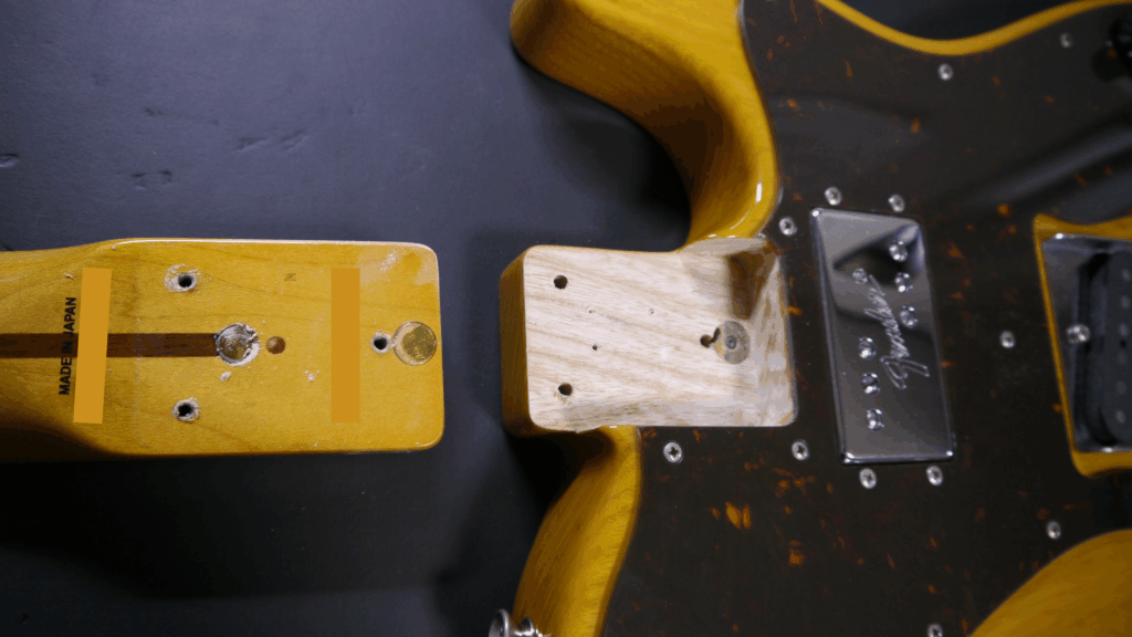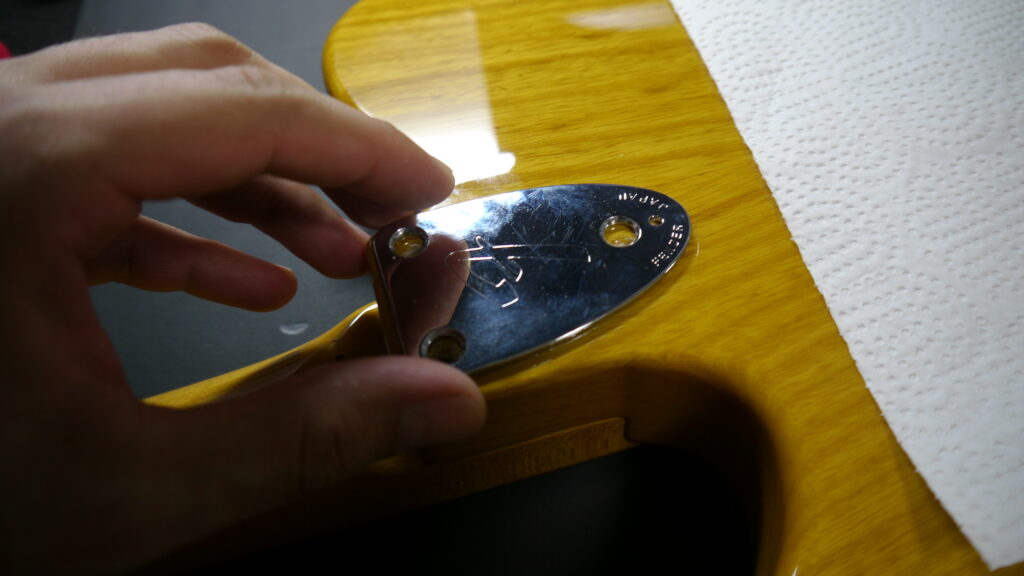 3点止めのプレートを外し、ネックとボディの状態を細かく確認・調整してまいります🔍