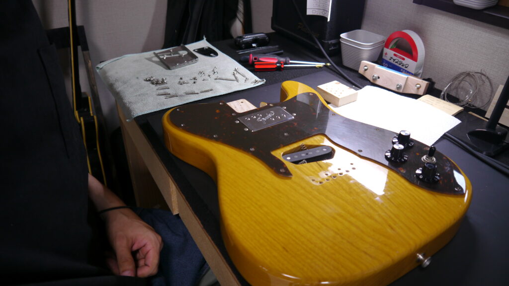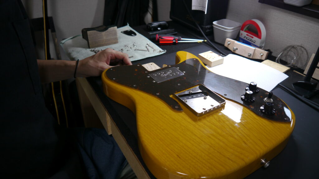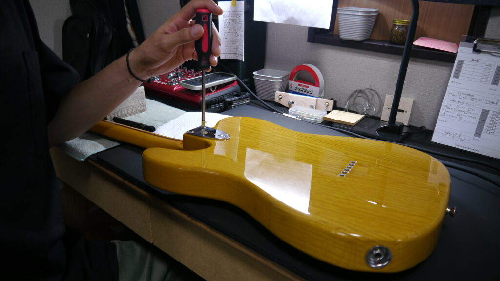 フレットのすり合わせから、ボリューム・スイッチのガリ改善、ブリッジ・ネック角度の最適化まで、一点一点の丁寧で精密な調整を実施。