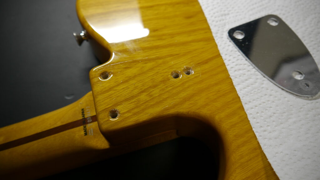 キャビティのクリーニングをはじめ、ネックとボディが接する面も丁寧に調整。確実な共振とサステインを確保してまいります😊