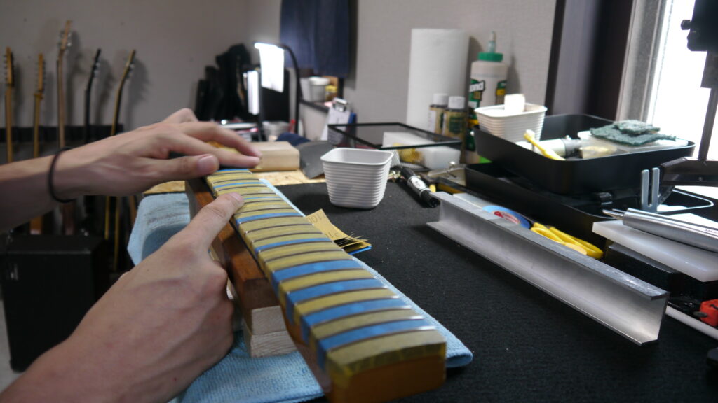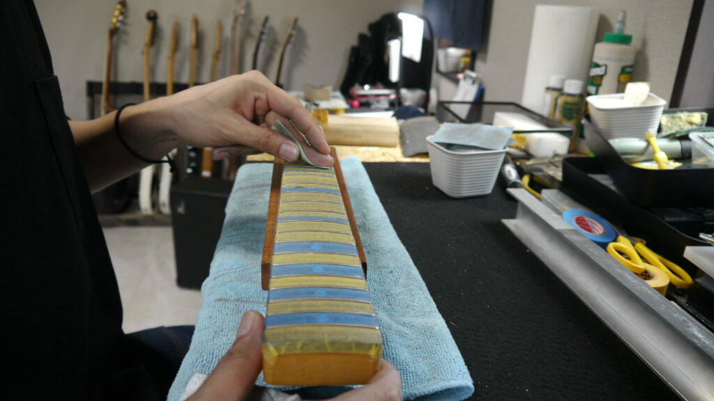 ネックの特徴やお客様のプレイスタイルに合わせて、丁寧にすり合わせを進めてまいります。