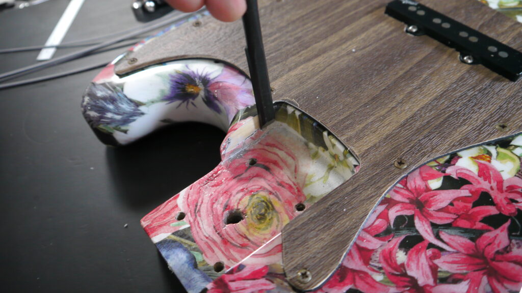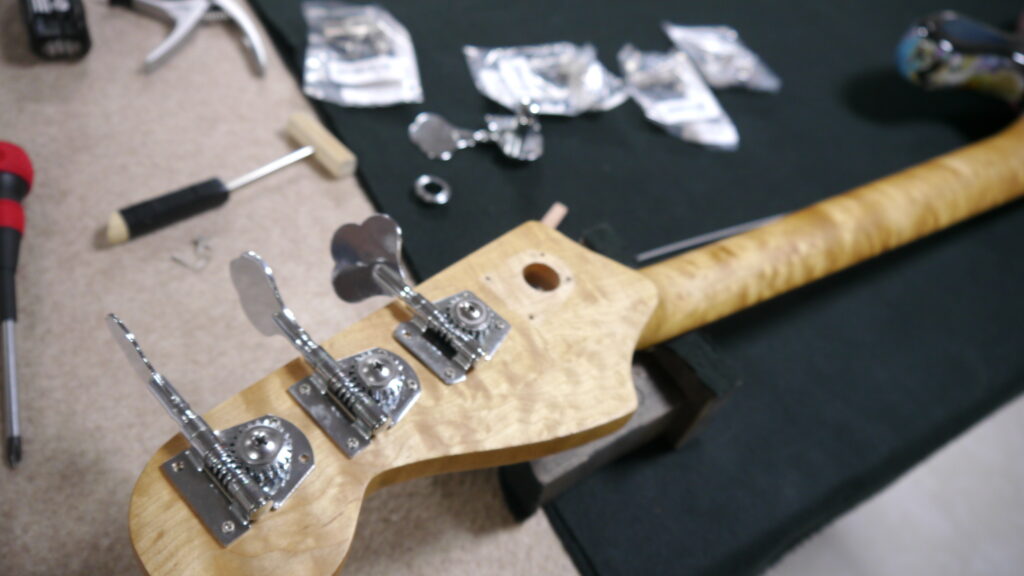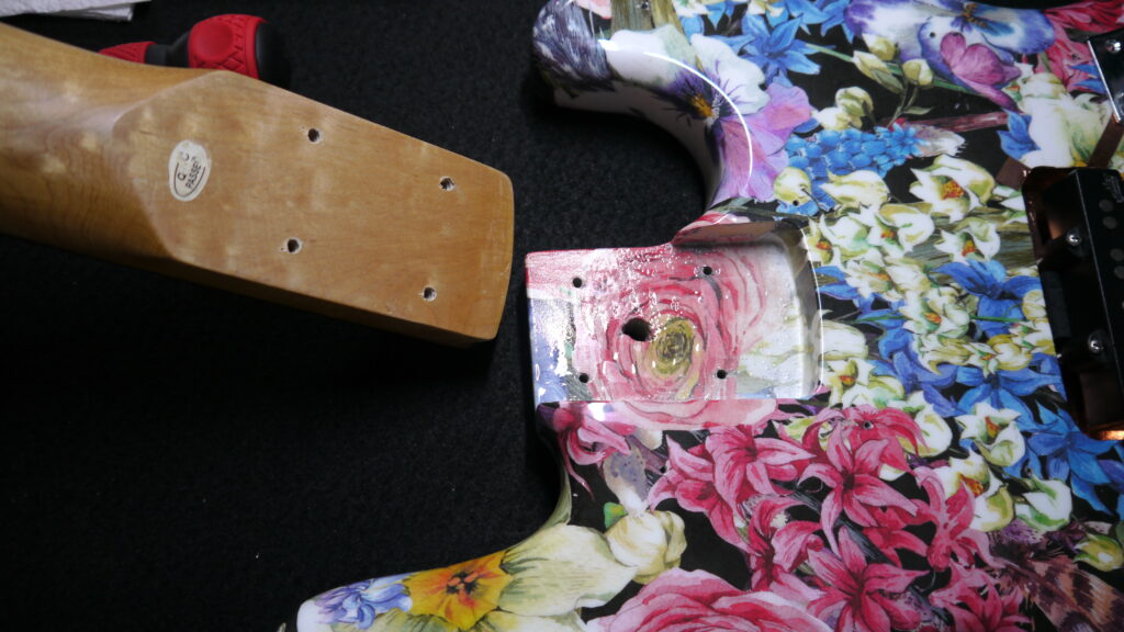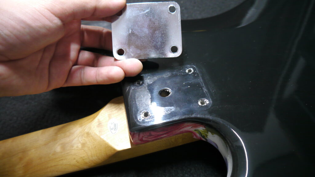 ネックジョイントのネジが完全に入らなかったため、こちらも少し穴を広げて最適化する必要がありました。これでネックとの相性がばっちりです✨