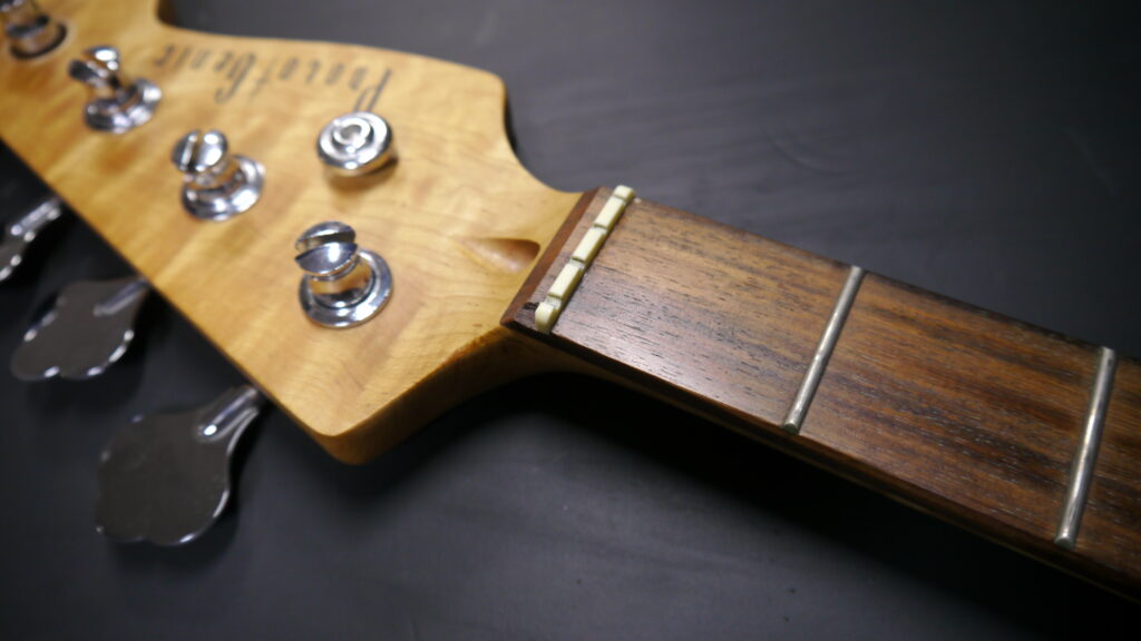 PHOTOGENICジャズベースのオーナー様より、「ナットの相談とペグ交換」のご依頼をいただきました。