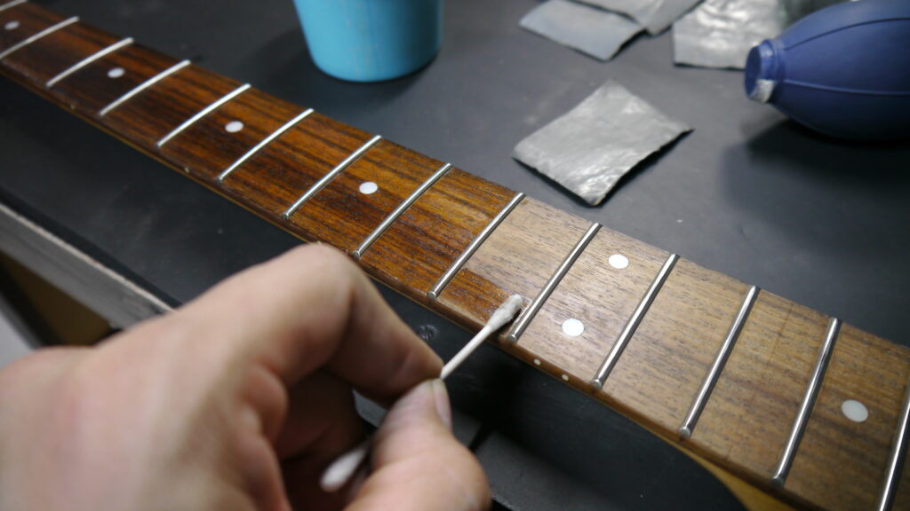 古いナットを外したあと、ナットポケット(スロット)をきれいにしていきます。