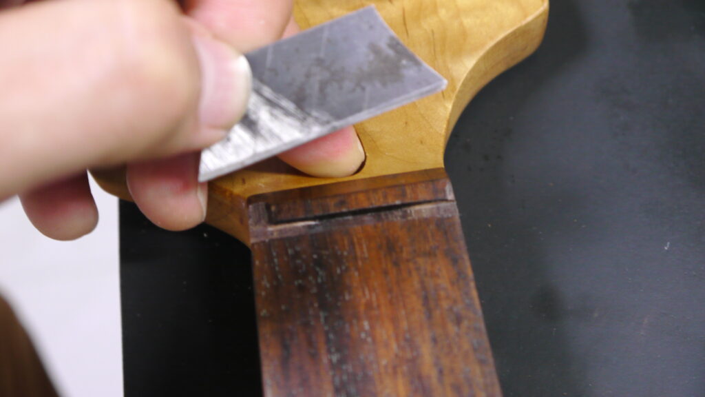 ネック部分とぴったりと合うよう、接触面を少し削りました。