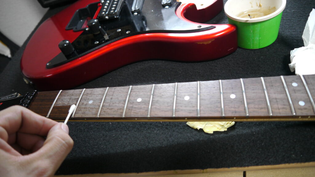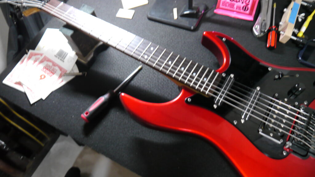 フレット研磨、指板のオイルケア、錆びたビスの洗浄交換等
