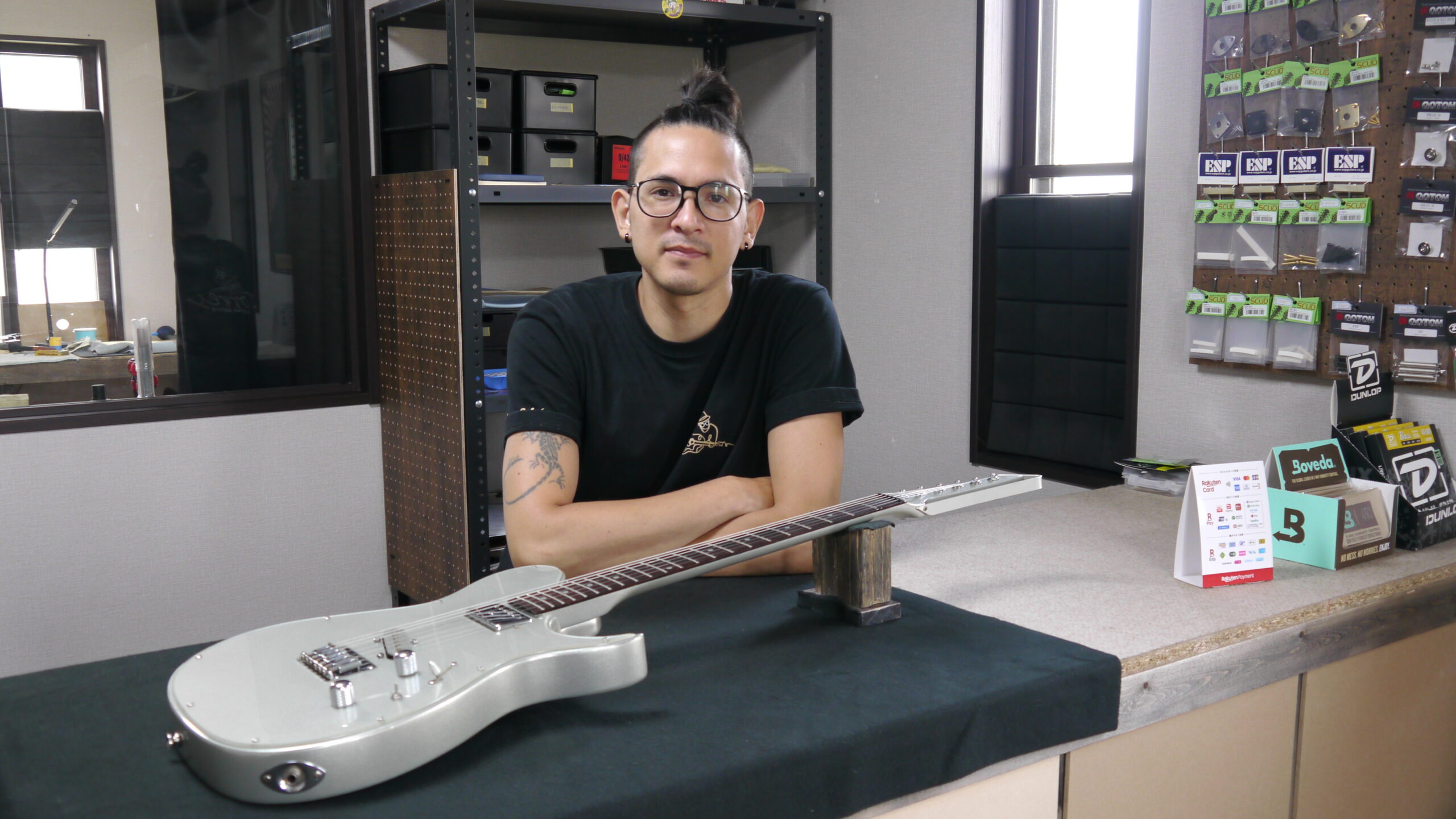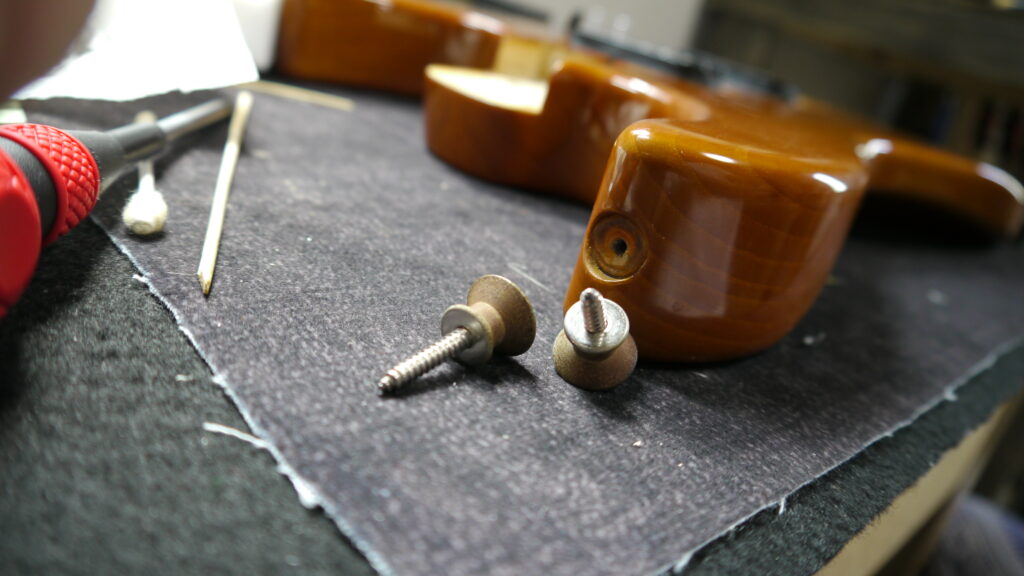取り付け後は、お客様がご持参された弦を張り、セットアップを続けていきます😊