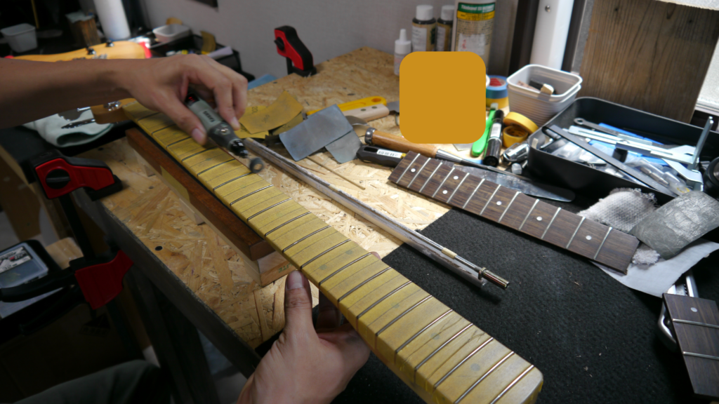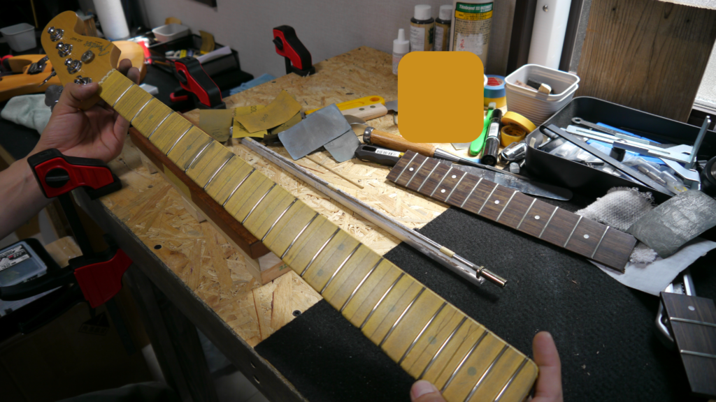 ネック角度が最適化され、良好な弦高とビビりのない状態を実現するための重要な土台が整いました。