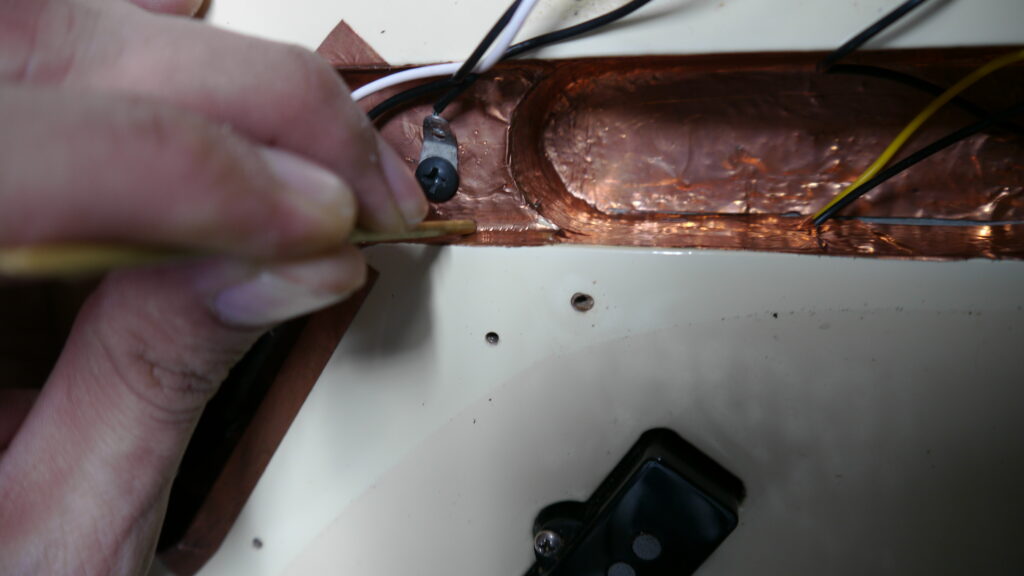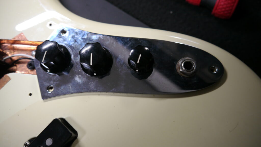 ポット・スイッチのクリーニングによるガリ・ノイズの解消、アース線とシールドテープの接点再確認・整理。