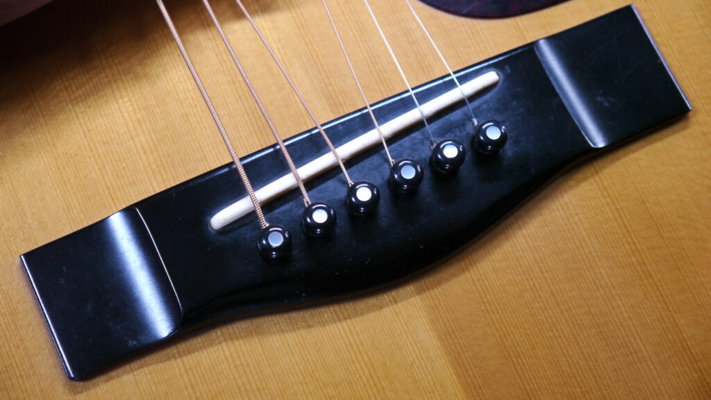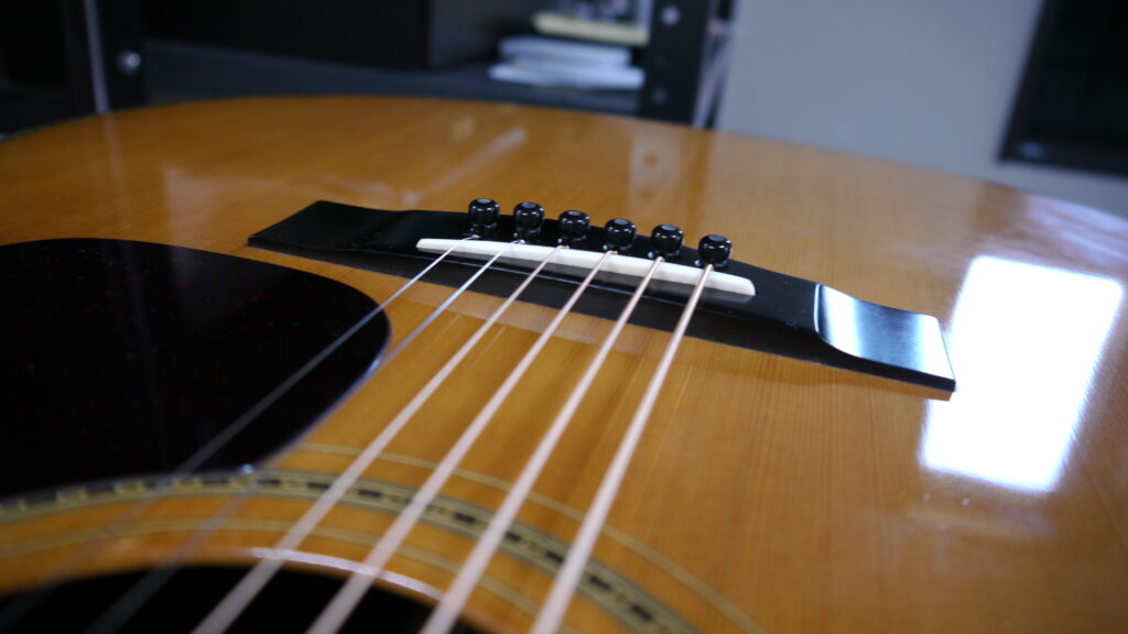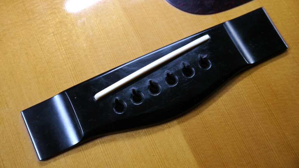 ブリッジの接着状態、サドルの高さや溝の摩耗、そして弦の振動がボディに効率よく伝わるための状態を総合的に確認してまいります🔍