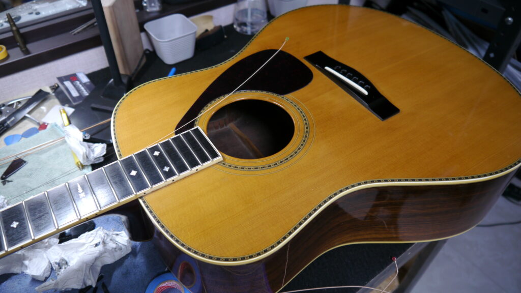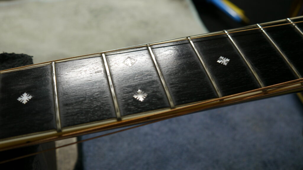 今回は、トータルセットアップ、ナット再接着、フレットすり合わせ、最適化サドルR加工、ディープクリーニング等を実施してまいります。