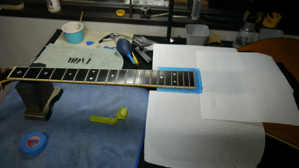 今回はディープクリーニングを行いますので、フレットの側面や根元まで、細かく丁寧にキレイにしてまいります🧽✨