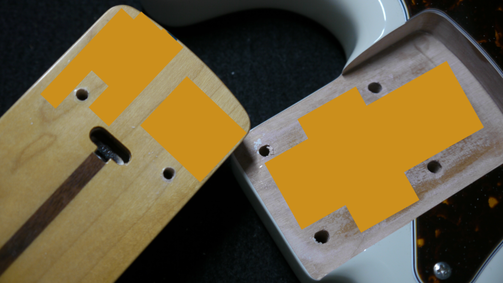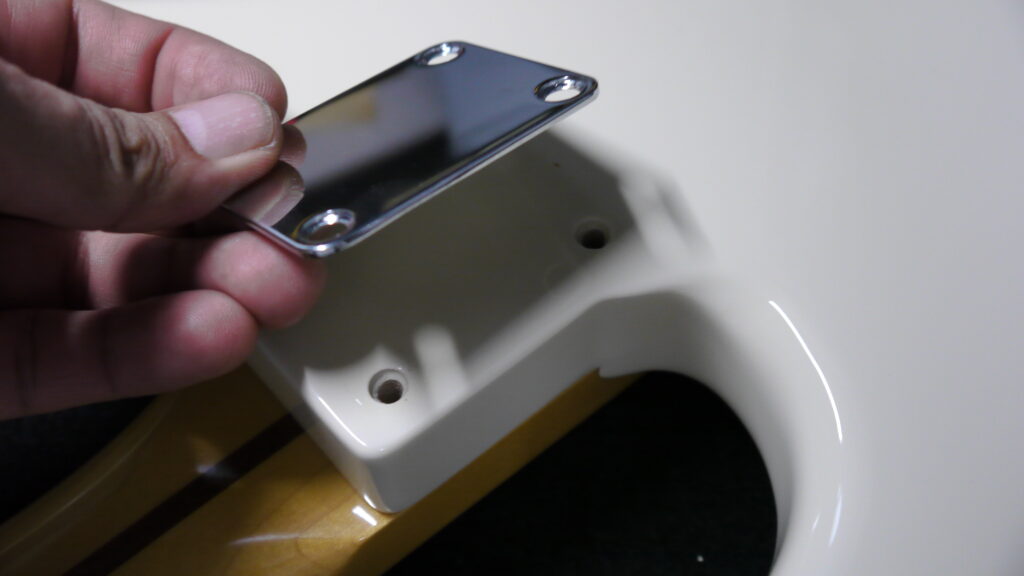 ネックプレートをお外しし、ネックポケットや接合面の状態を見ていきます。