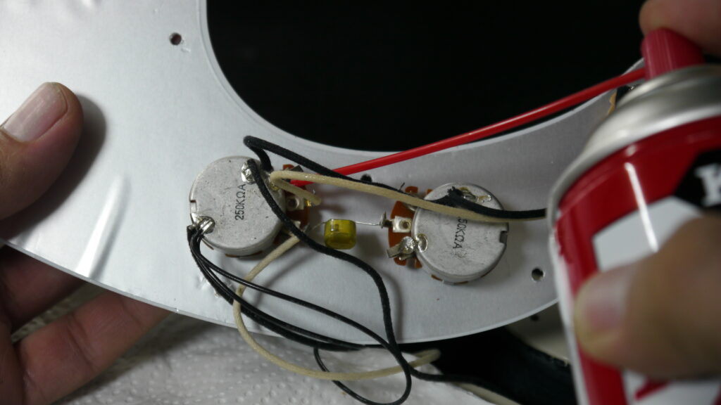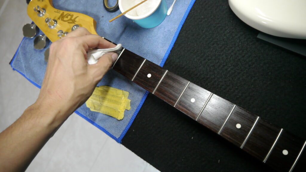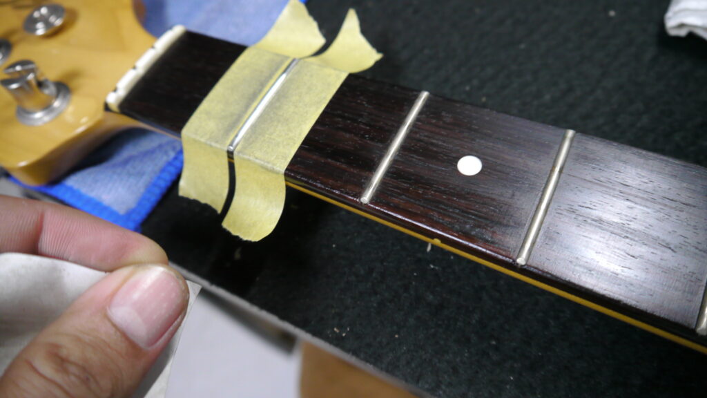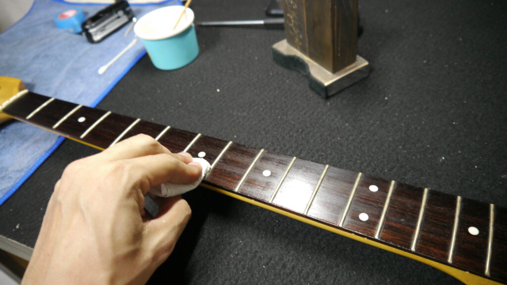 指板のクリーニング・ケア、ボディ内部等の清掃。