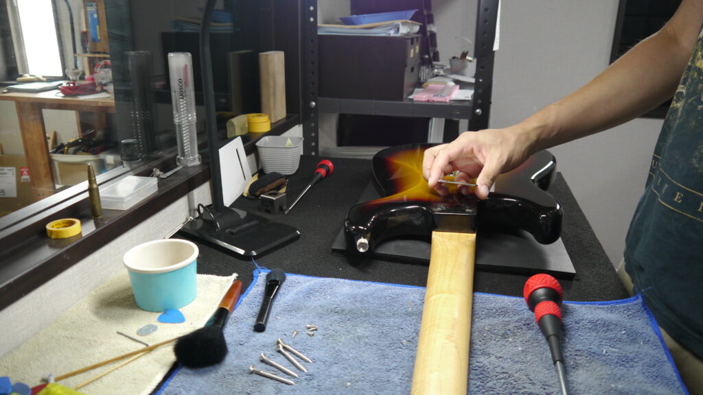 今回には、トータルセットアップ、フレットすり合わせ、ディープクリーニングを実施してまいります。
