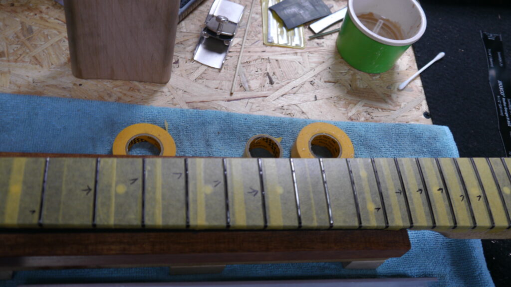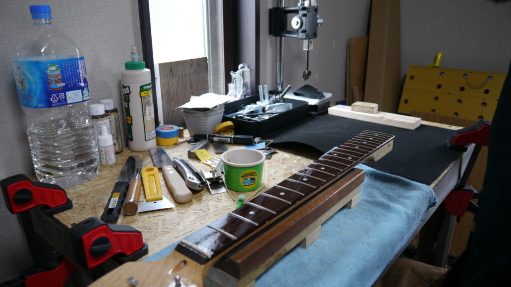 今回はフレットすり合わせを行うため、準備を進めていきます。
