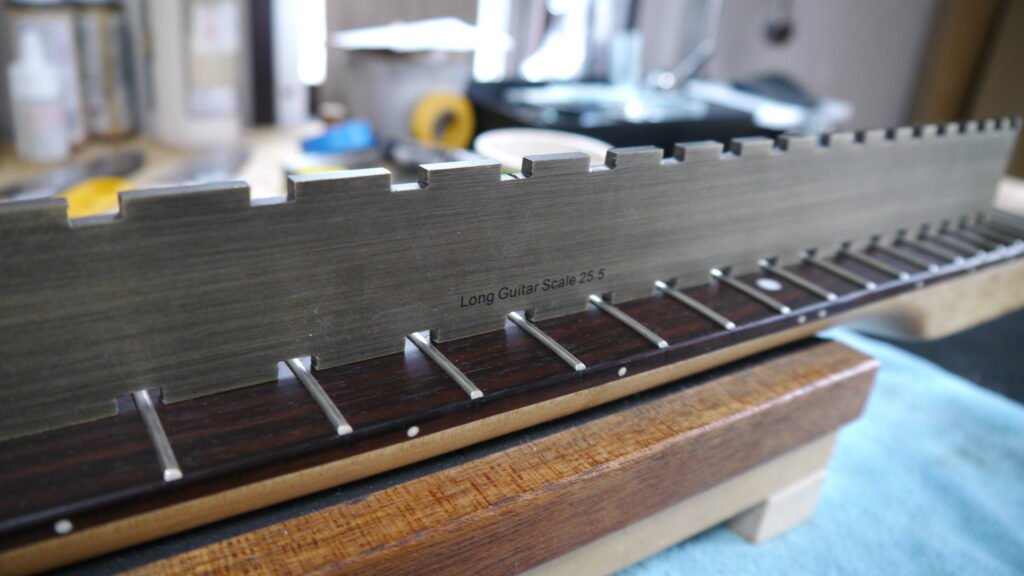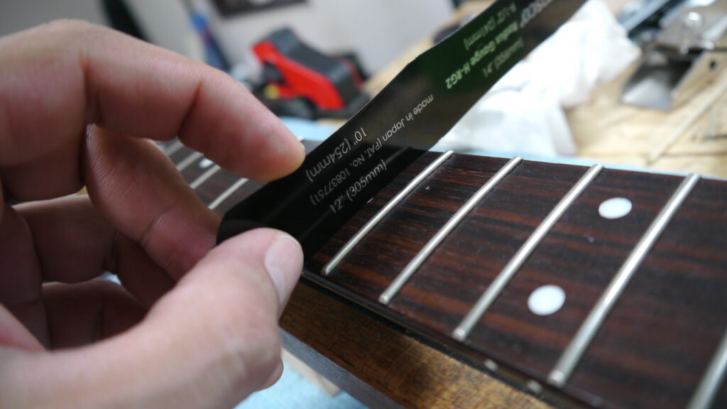 サドルのR調整、フレット仕上げ、弦高設定。全ての工程がこの一本のラディアスを中心に調和することで、初めて完璧な演奏性が生まれます📐✨