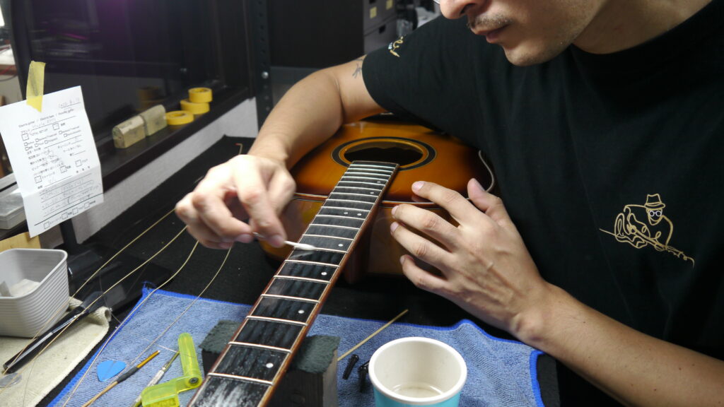 一つ一つのフレットを丁寧に磨き上げることで、滑らかなチョーキング感とクリアな音色を引き出してまいります✨