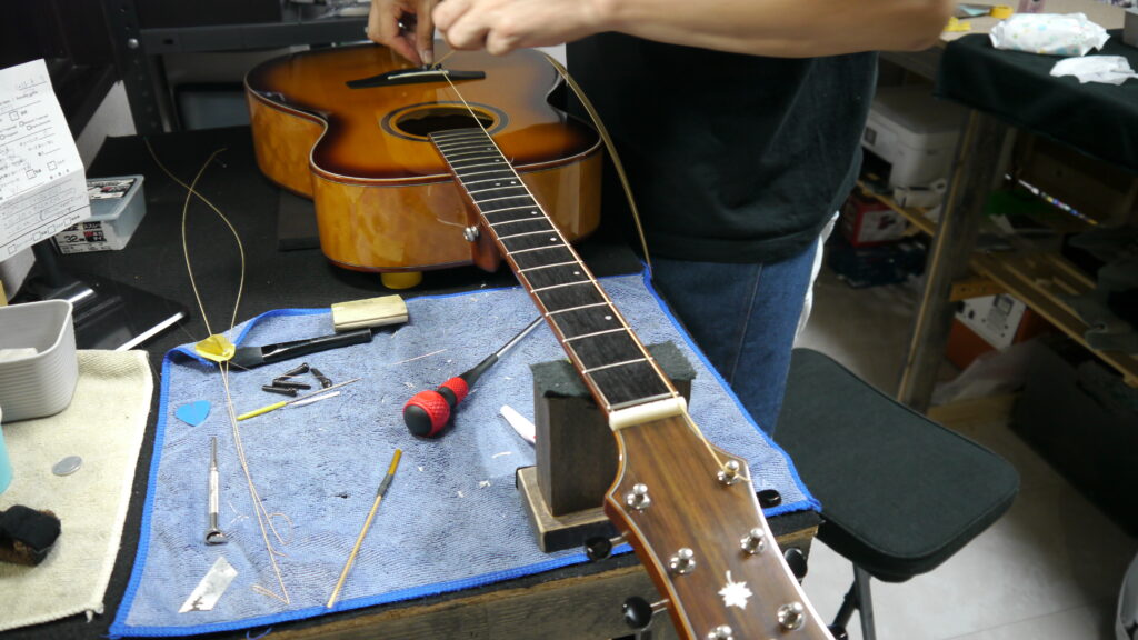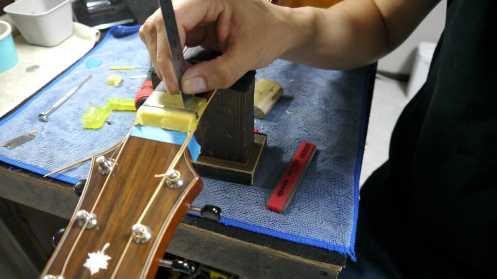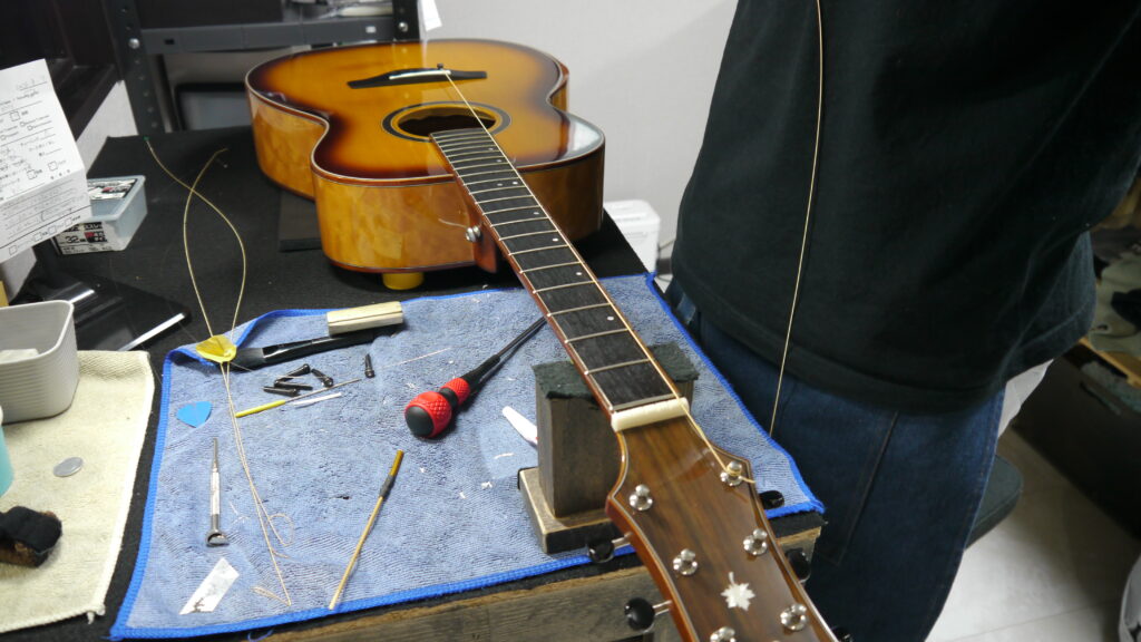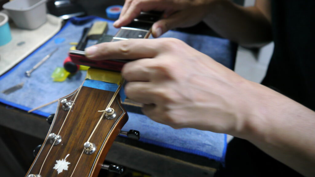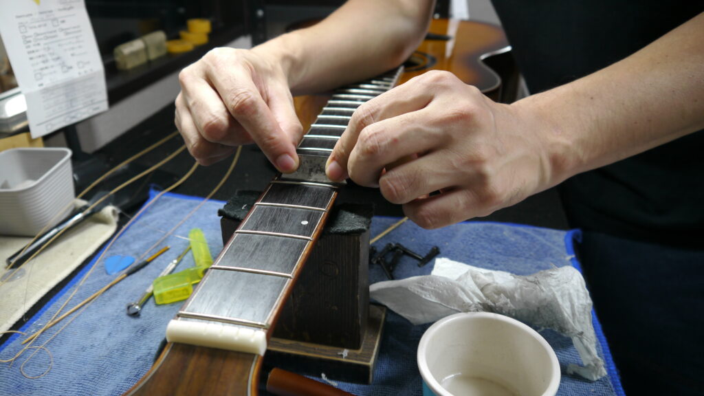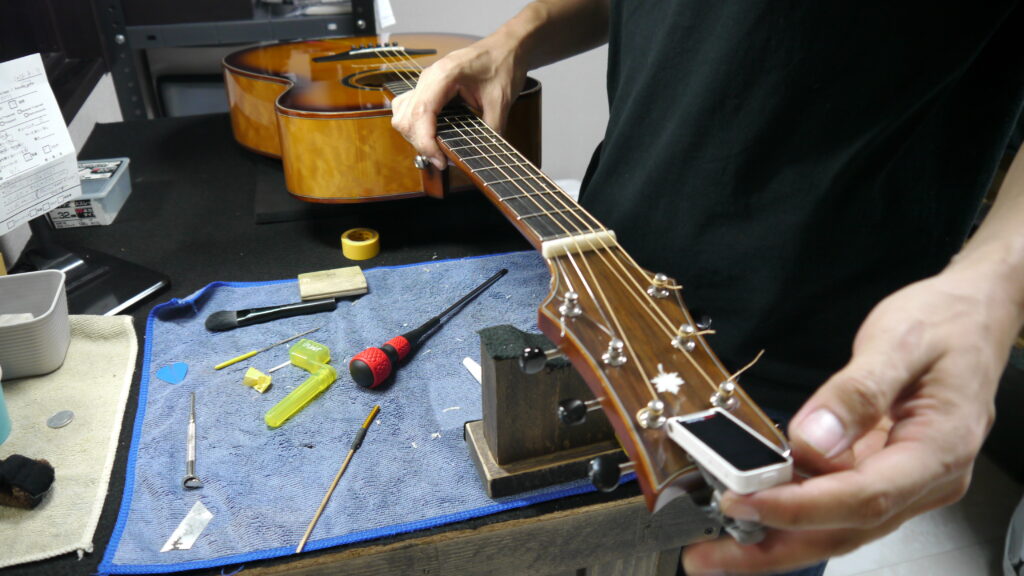ゼロフレットなので、その特徴に合わせた調整を続けていきます。