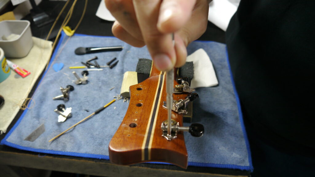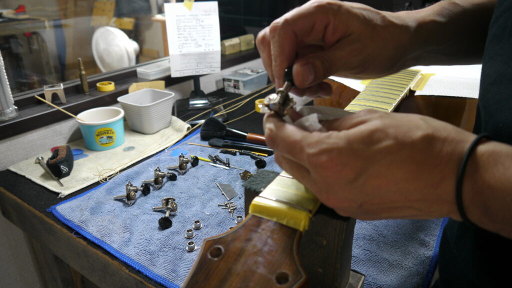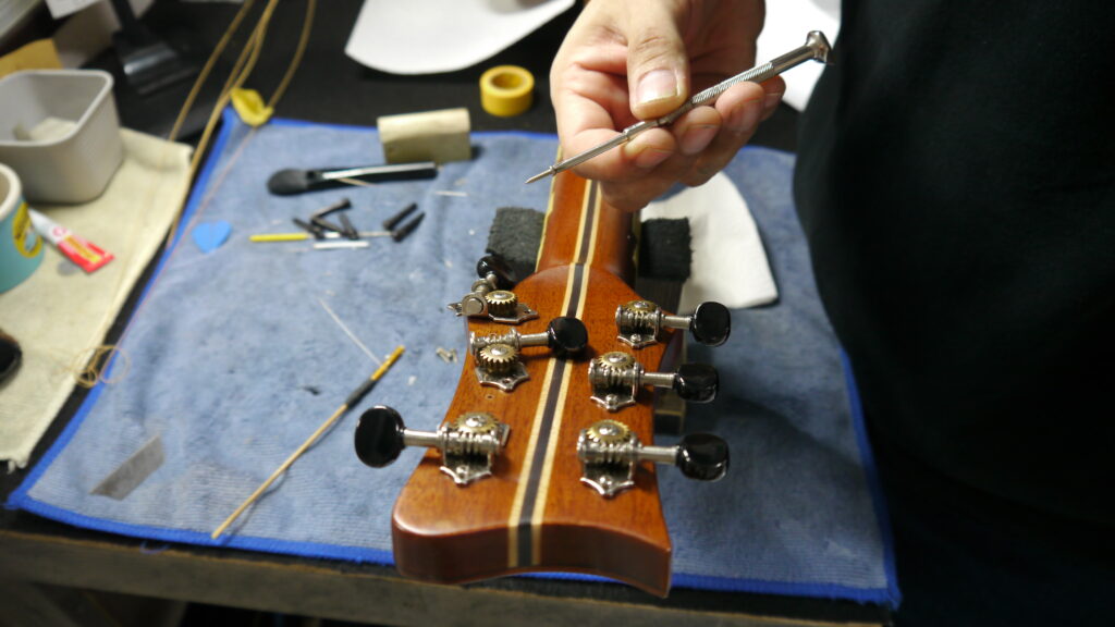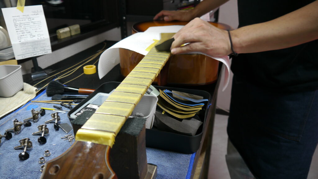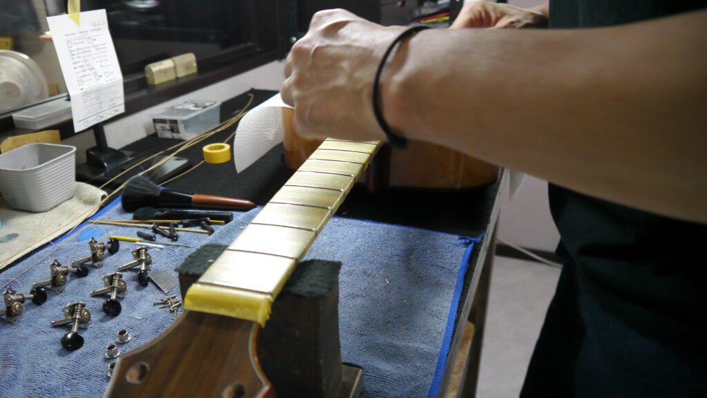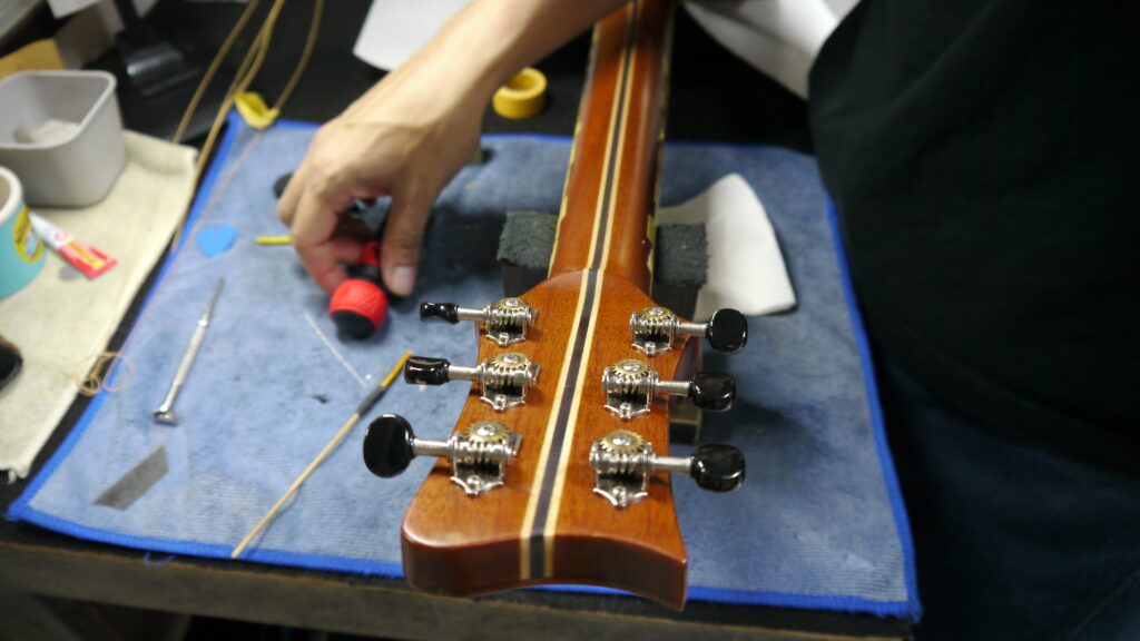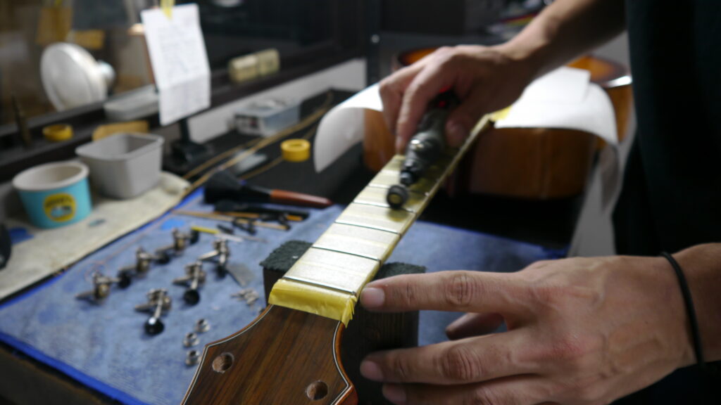 ゼロフレットなので、その特徴に合わせた調整を続けていきます。