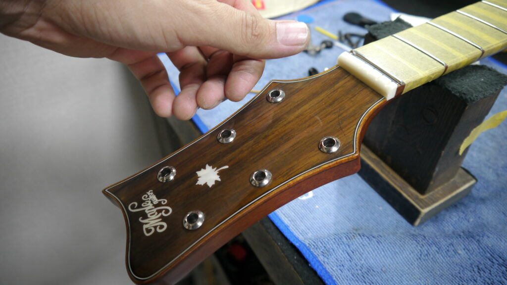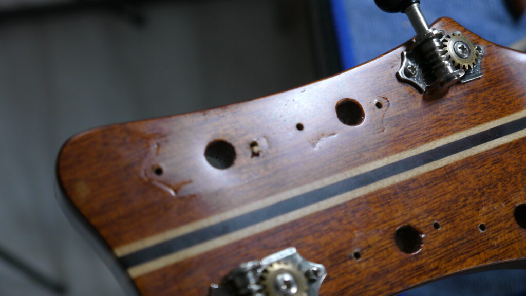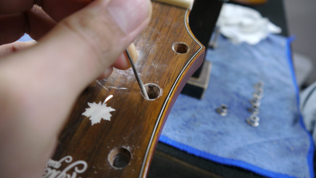 ヘッド側のペグ穴もキレイに整えられました。とてもきれいに仕上がりました✨