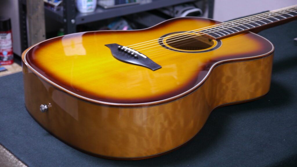 こちらのギターの指板は、アコースティックギターによく見られる経年による自然な乾燥状態でした。木材に適度な潤いを取り戻すことが、良い音と耐久性の鍵です。
