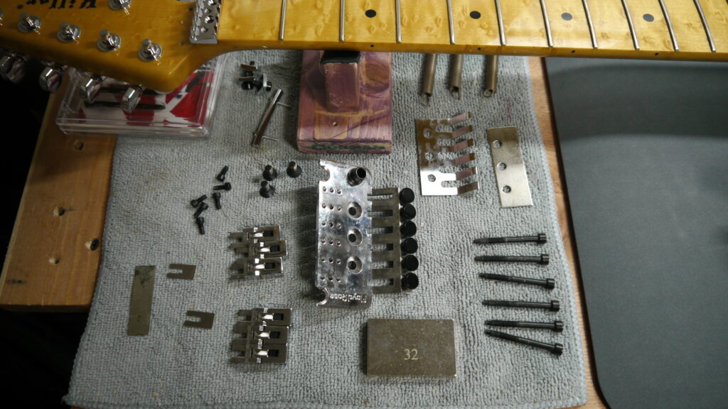 ✅ フロイドローズのスペーサー状態と全体的なバランスの乱れ(ブリッジの動作不安定とチューニング精度に影響を及ぼす段階)