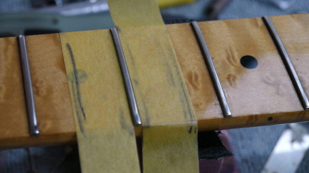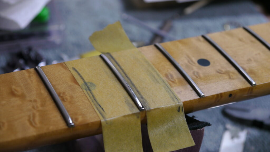 手作業で、微細なやすりを使って一つ一つのフレットトップを丁寧に磨き上げます。これにより、深みのある美しい光沢を取り戻すとともに、チョーキングやスライド時の滑らかな感触を格段に向上させてまいります。