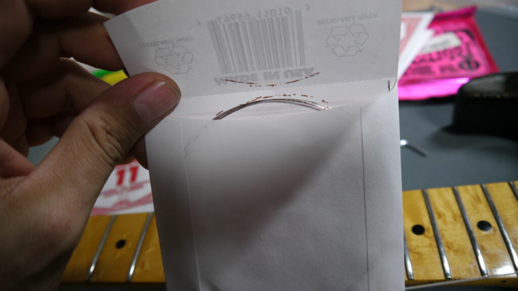 サビのある弦はフレットの摩耗を早める原因となります。お気持ち程度でキレイにしましたが、この際はお早めの交換をおすすめいたします。