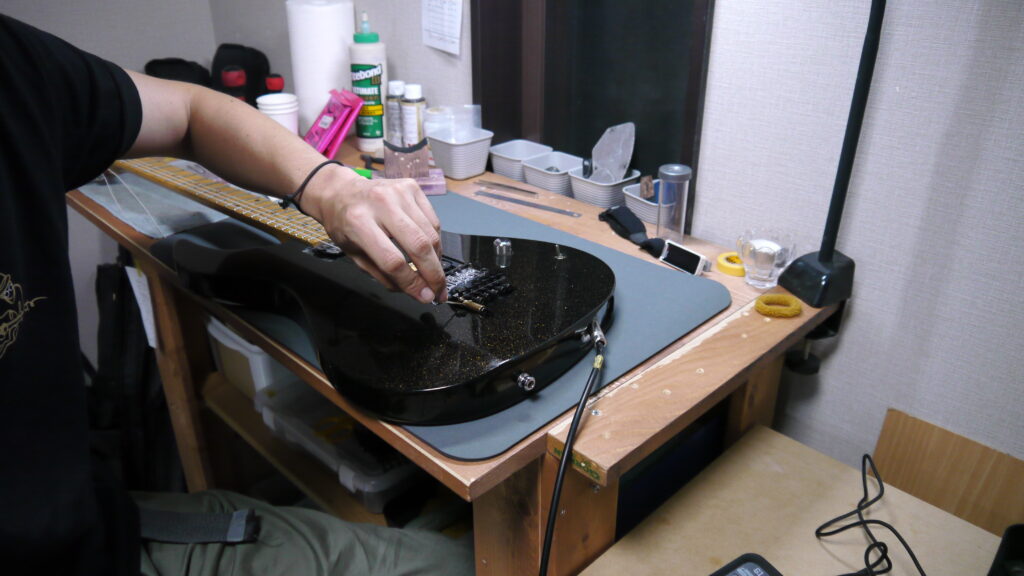 スタビライザー(アーミングアジャスター)への装着と、オクターブピッチ・ピックアップ高さ等を含む総合調整。