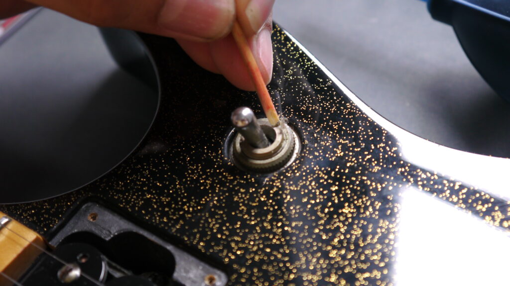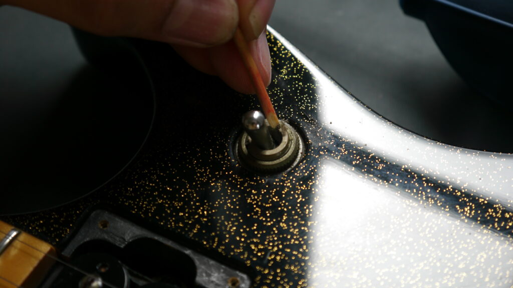スイッチ周りは意外と埃や汚れが溜まりやすい部分です。定期的なメンテナンスで、ノイズのないクリアなサウンドと滑らかな操作感を長くお楽しみいただけます🧼🎸✨