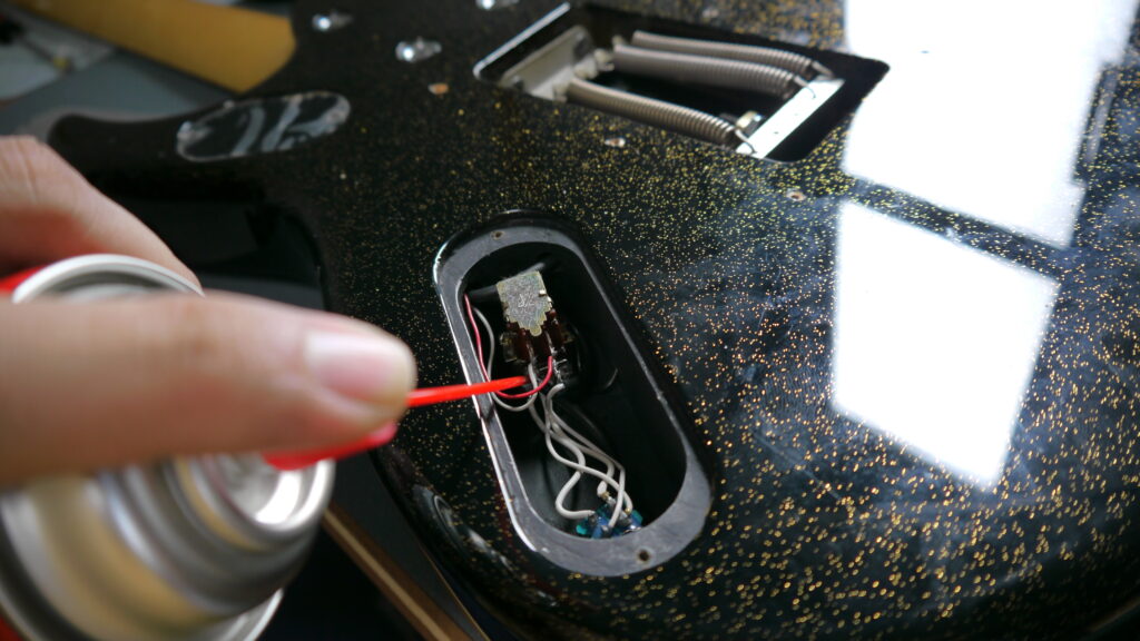ポットやジャックなどの接点を丁寧に清掃し、ノイズの原因となる酸化被膜や汚れを除去いたします。これにより、クリアなサウンドと信頼性の高い接続を長くお楽しみいただけます🧼🔌✨🎸