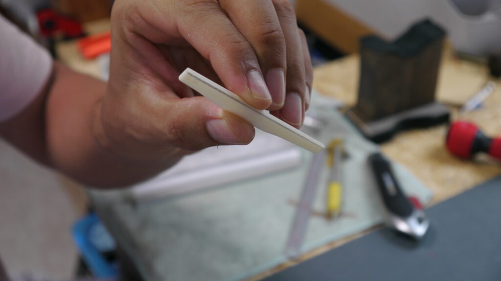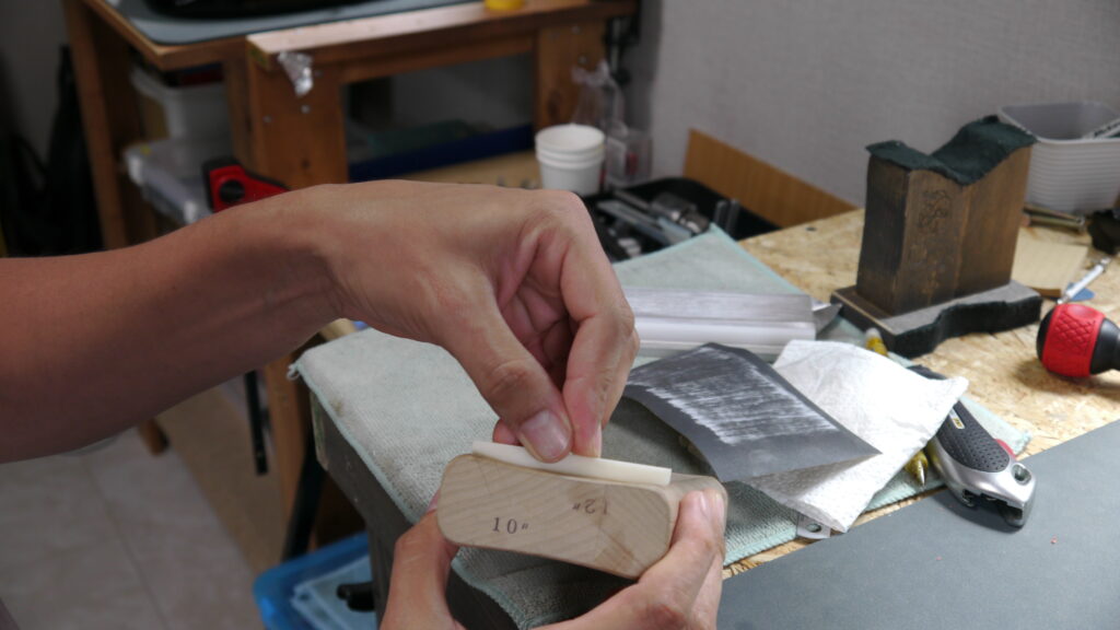 このように何度も形を整え、指板等のアールに合わせて微調整していきます。少しずつ削りながら弦の乗りやバランスを確認し、最適な状態に仕上げてまいります🔧🎸✨