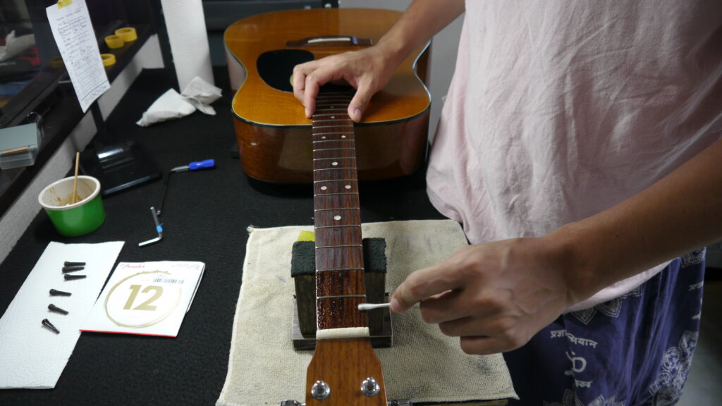 指板のクリーニングをしながらケアしていきます。
