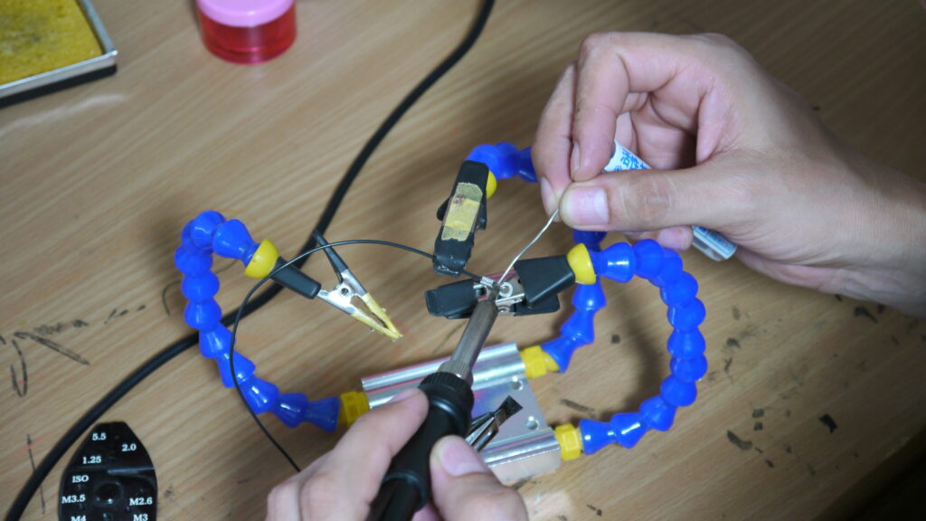 これをポットのアースへハンダ付けして配線します。確実に接続することで、キャビティ全体のアースが統一されます🔧🔥