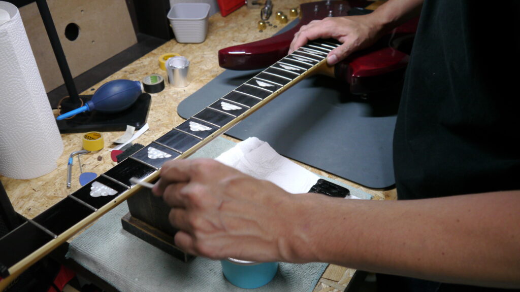 汚れ除去と保湿による木材コンディション最適化、フレット研磨による滑らかな演奏性