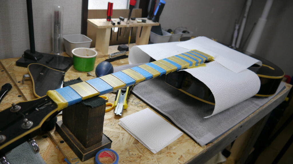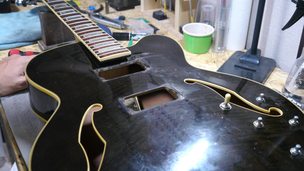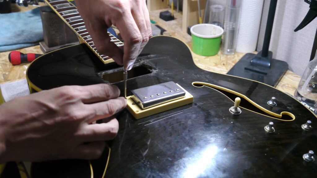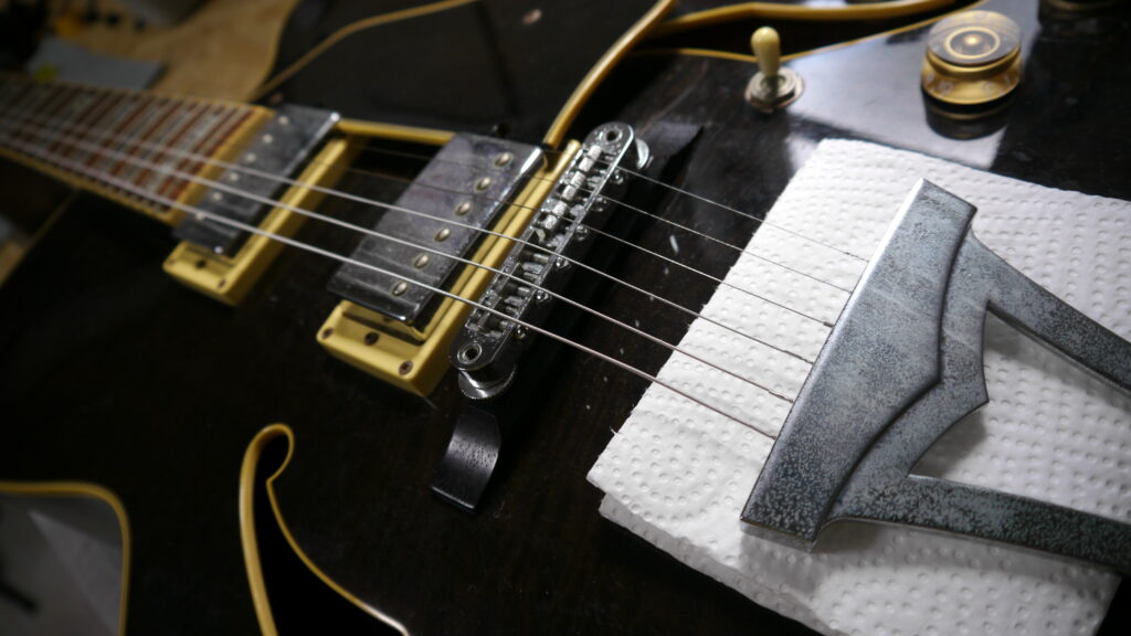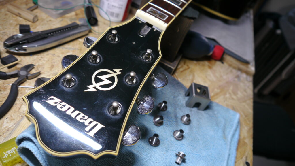 今回は、トータルセットアップ、ディープクリーニング、電装系一時取り出し診断、フレットすり合わせ、断線修理、ジャック取り付け(プレートタイプ)を実施してまいります。