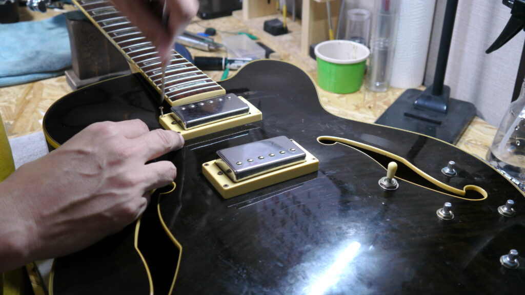摩耗したフレットを整え、4・5弦のビビりを解消