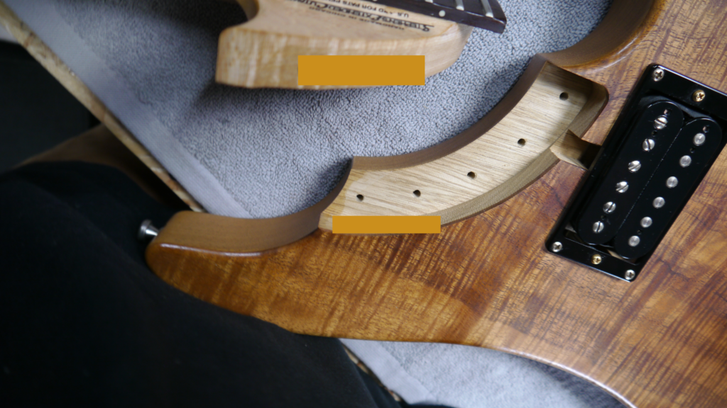 ネックジョイント部分を確認していきます。接合面の状態やネック角度をしっかりチェックし、最適な調整を行ってまいります🔍✨