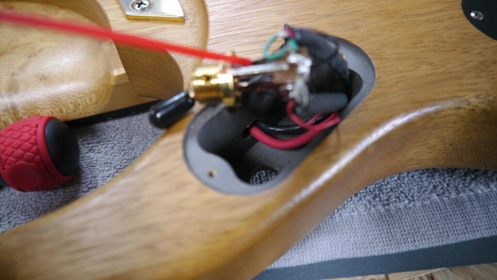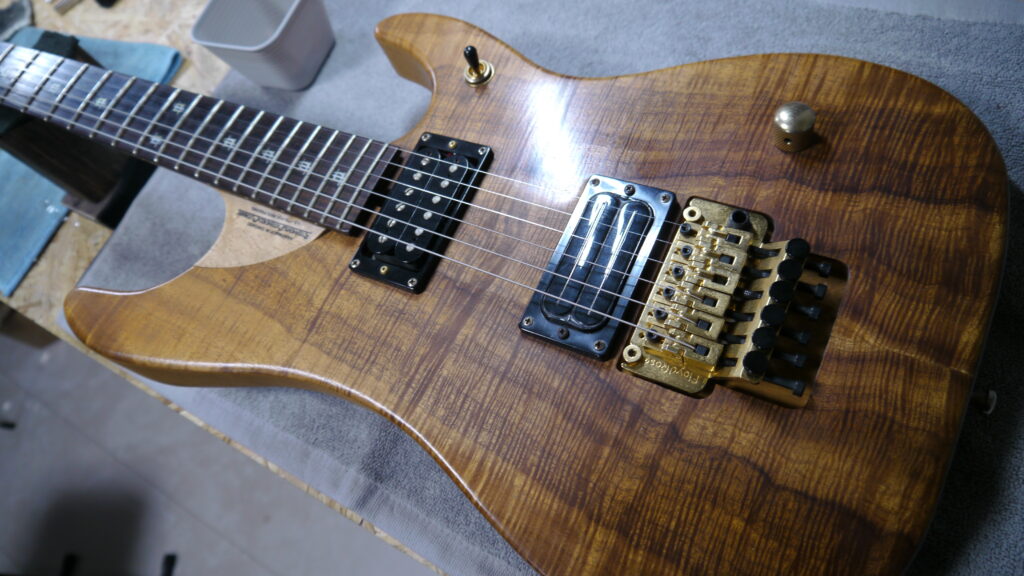 診断で発見されたハイフレットつまり、各部の経年汚れ、セレクターの調子不良(お客様ご指摘の症状)等、複数の不調が重なった状態でした。ディープクリーニング(フロイドローズ分解清掃・ペグ類清掃含む)、フレットポリッシュ、電装系チェック・クリーニング、ネックジョイント確認、シム撤去による弦高最適化、弦高・オクターブ・ピックアップの精密調整等により、これらの課題を解消いたしました。